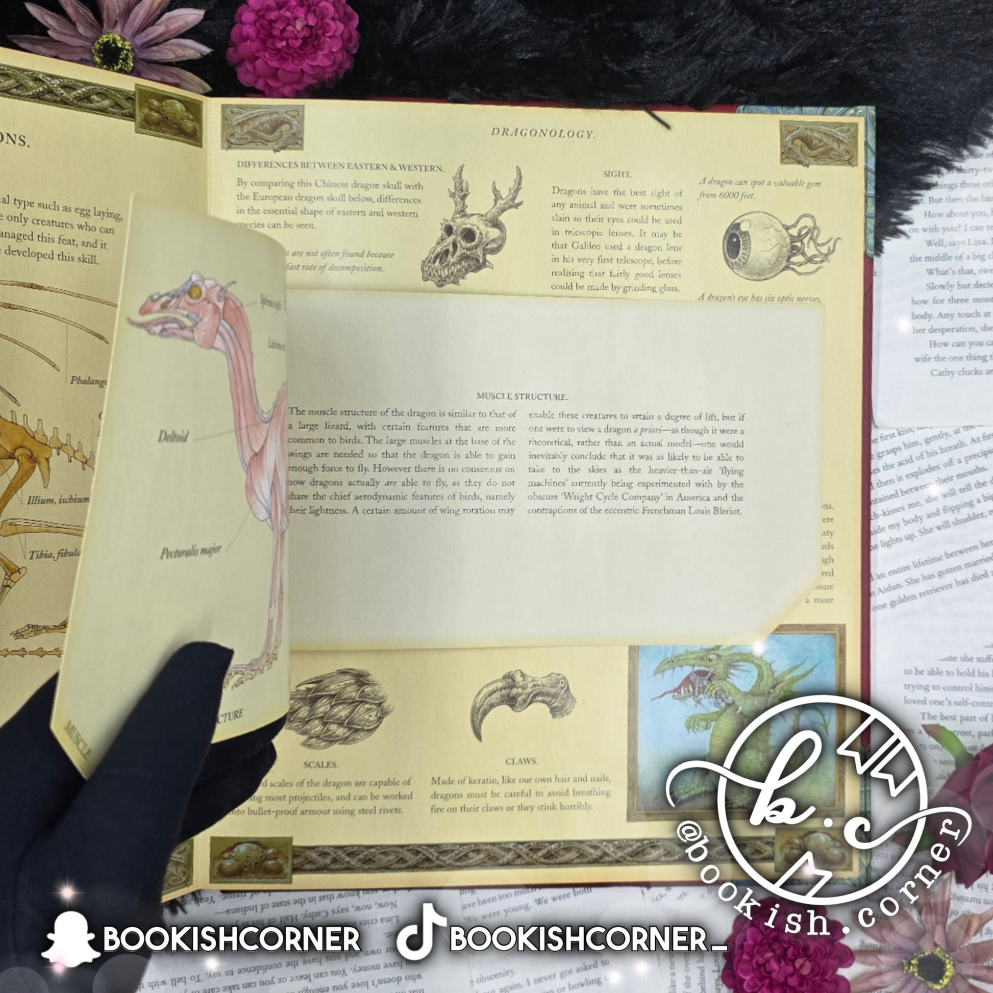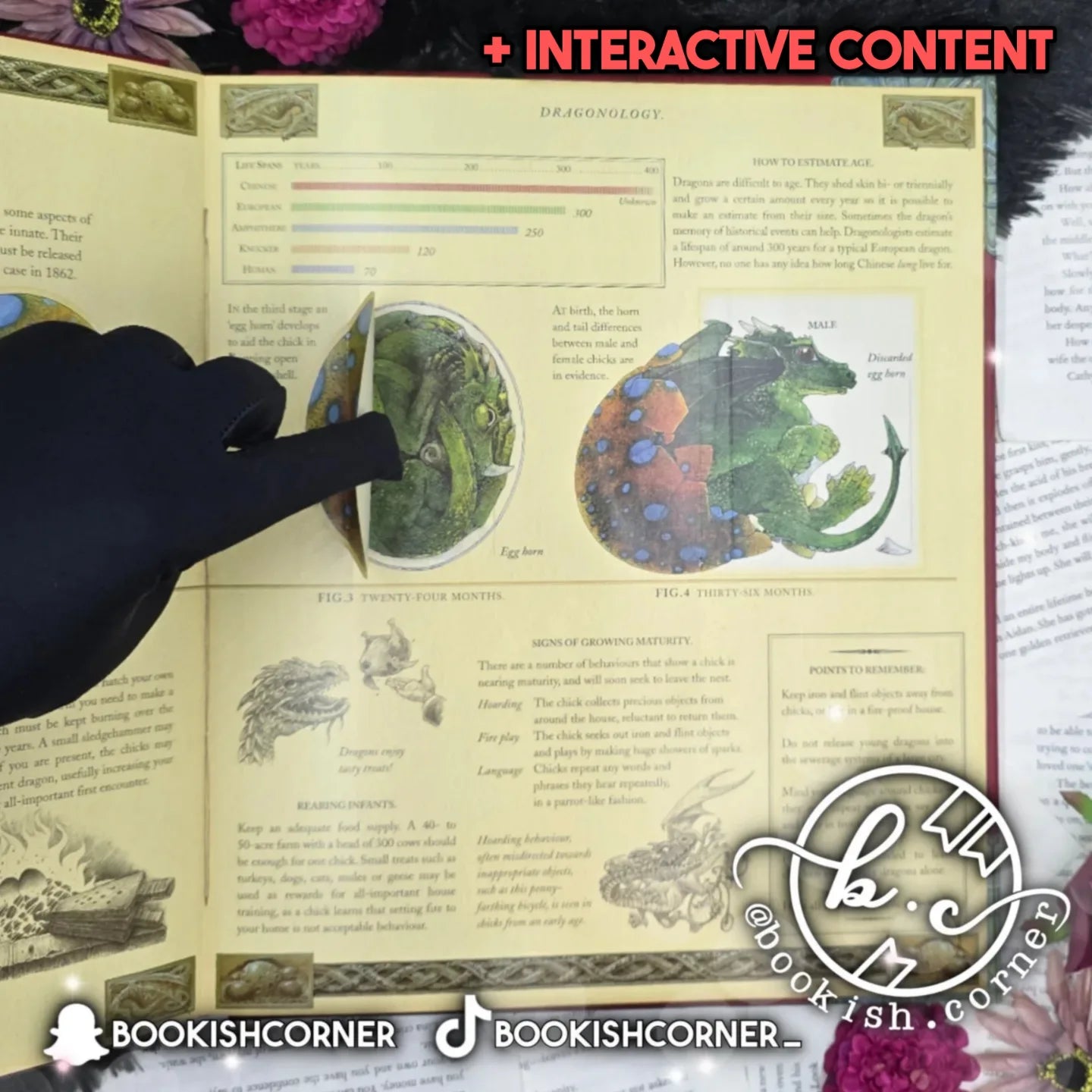 -- Novelty item on every spread, including tactile samples of dragon wings, dragon scales, and dragon skin